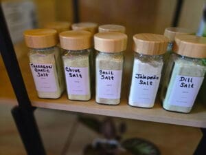 Carla also makes cooking salts out of herbs and handcrafts greeting cards, all of which she sells in the store.