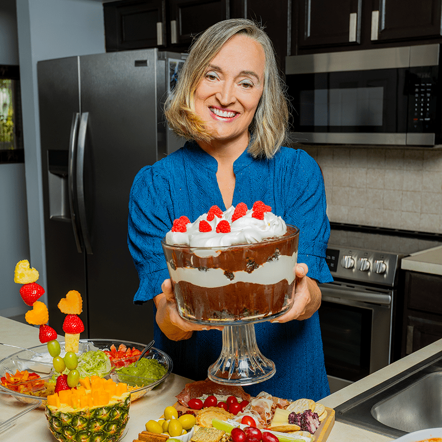 “I first made my chocolate trifle like 30 or 40 years ago,” she says. “It’s amazing. But back then, the brownie mix was 12 ounces and now it only comes in 8 ounces. Everything is smaller now. I was really surprised to learn that and had to re-type the recipe to update it.”