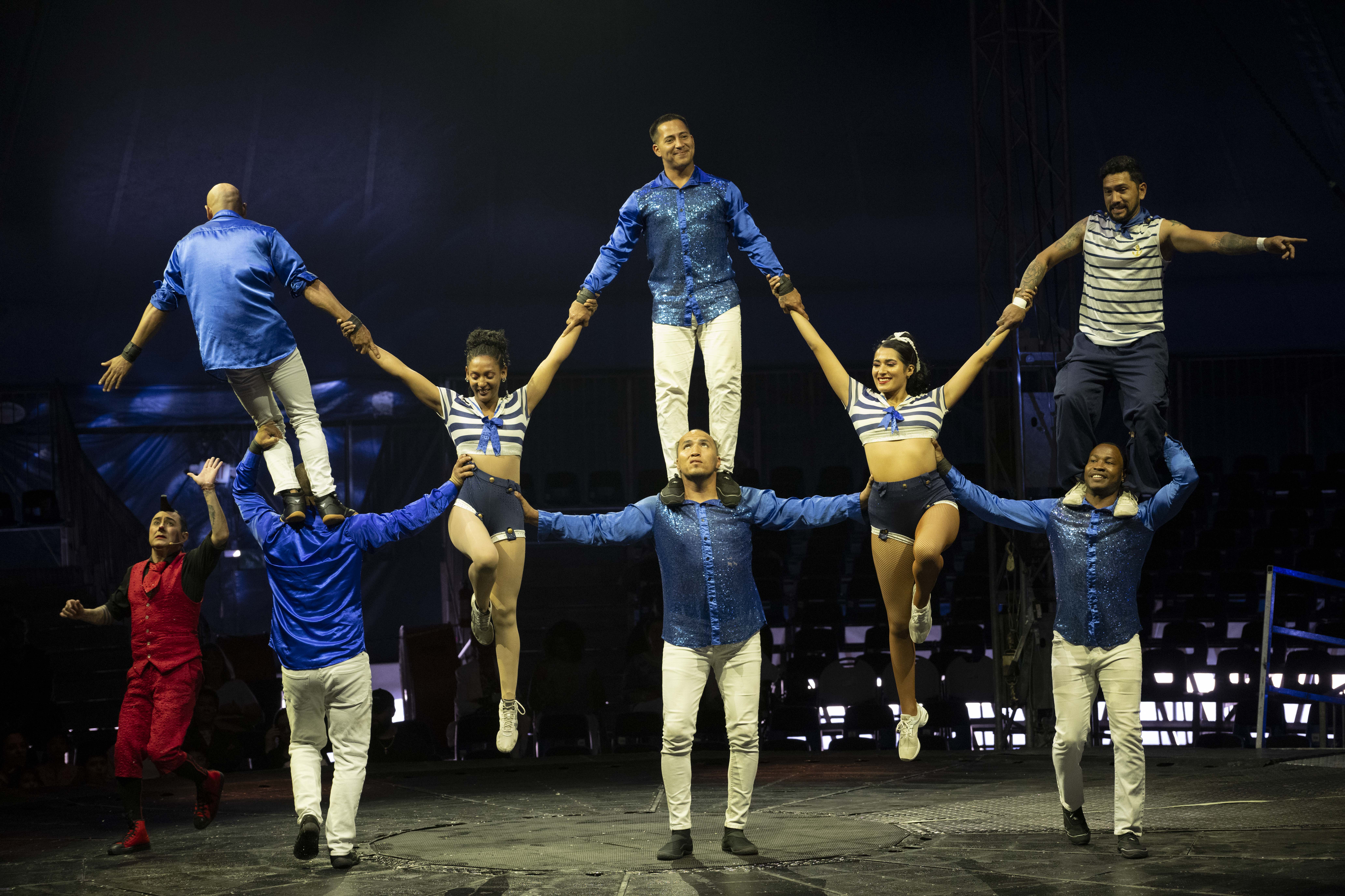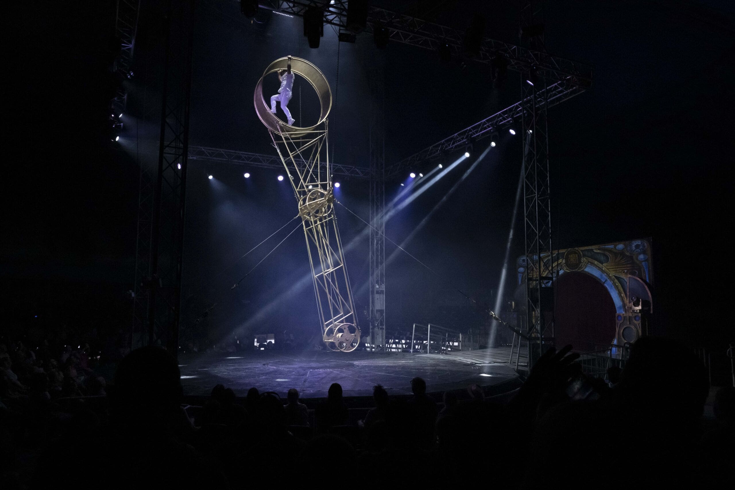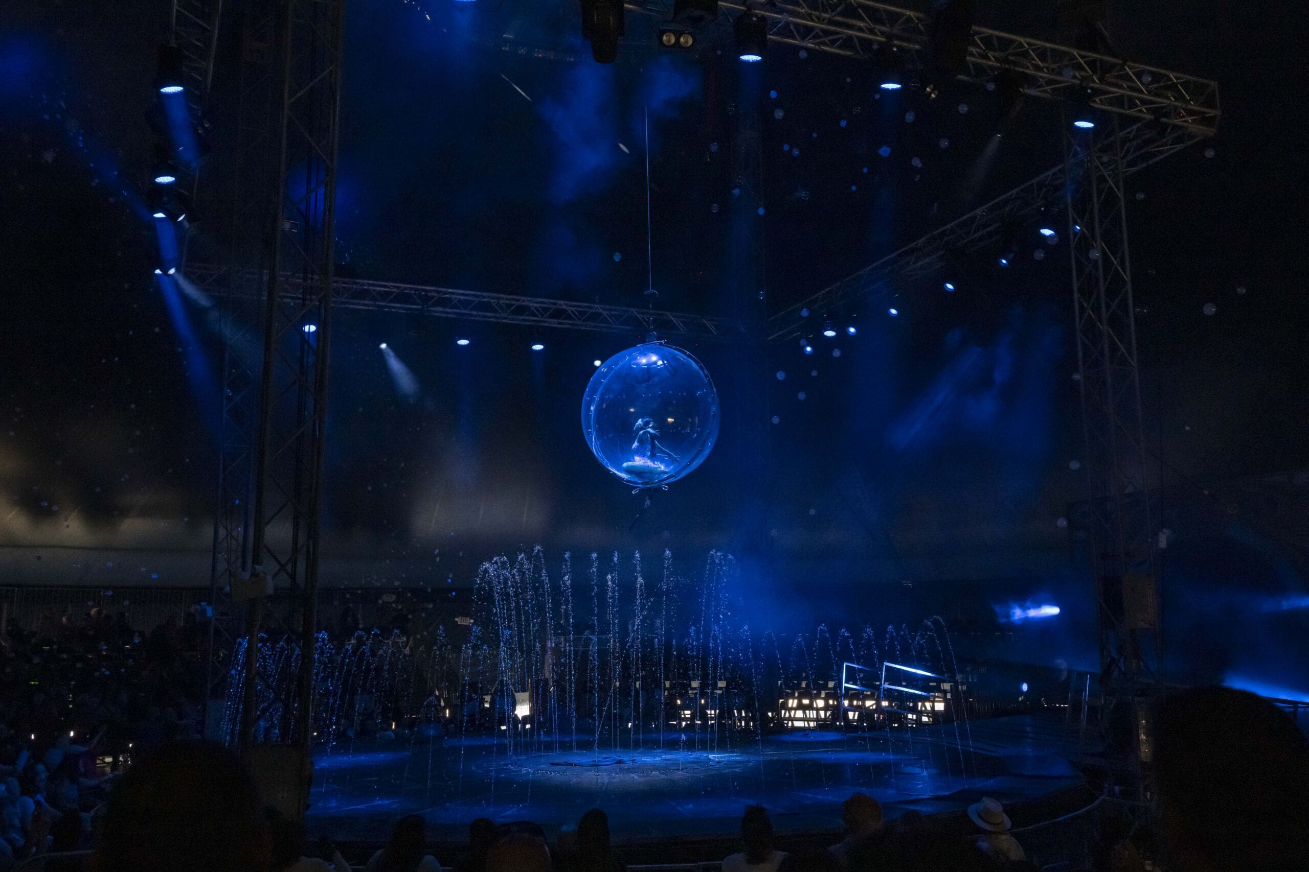 Inside the tent, performers take to a custom water stage that reflects lights and amplifies the drama of every stunt. The show features gravity-defying acrobats, Latin-inspired rhythms, comedic moments and audience participation that keeps the atmosphere lively. The ringmaster, described by many as “a hoot,” sets the tone early, weaving humor throughout the production and drawing spectators into the action.