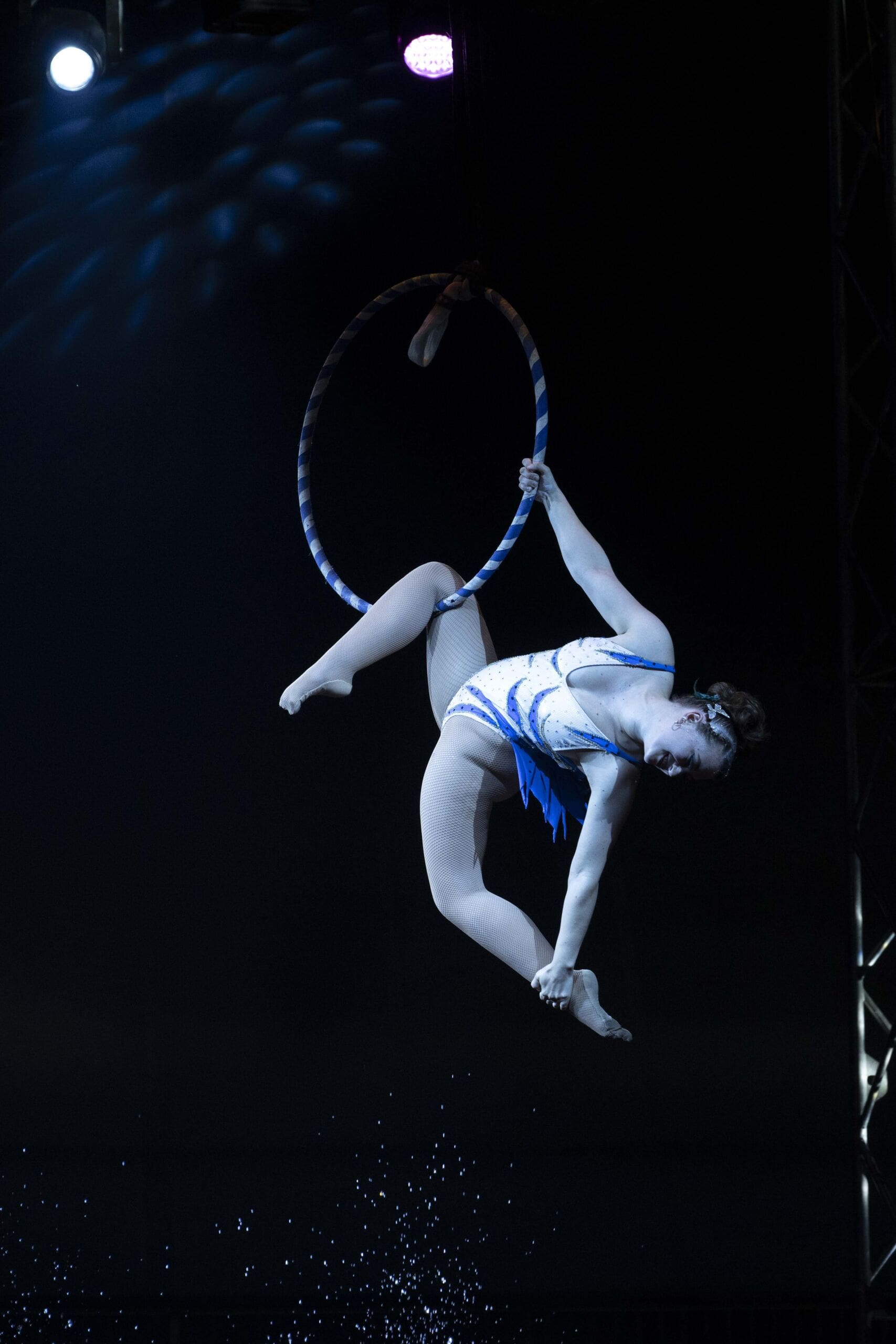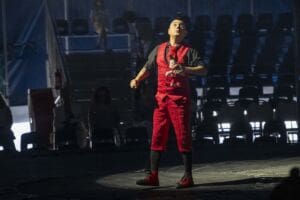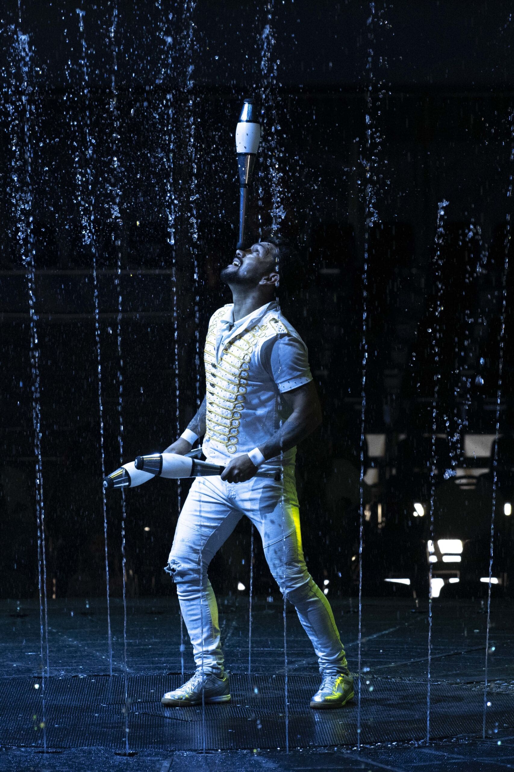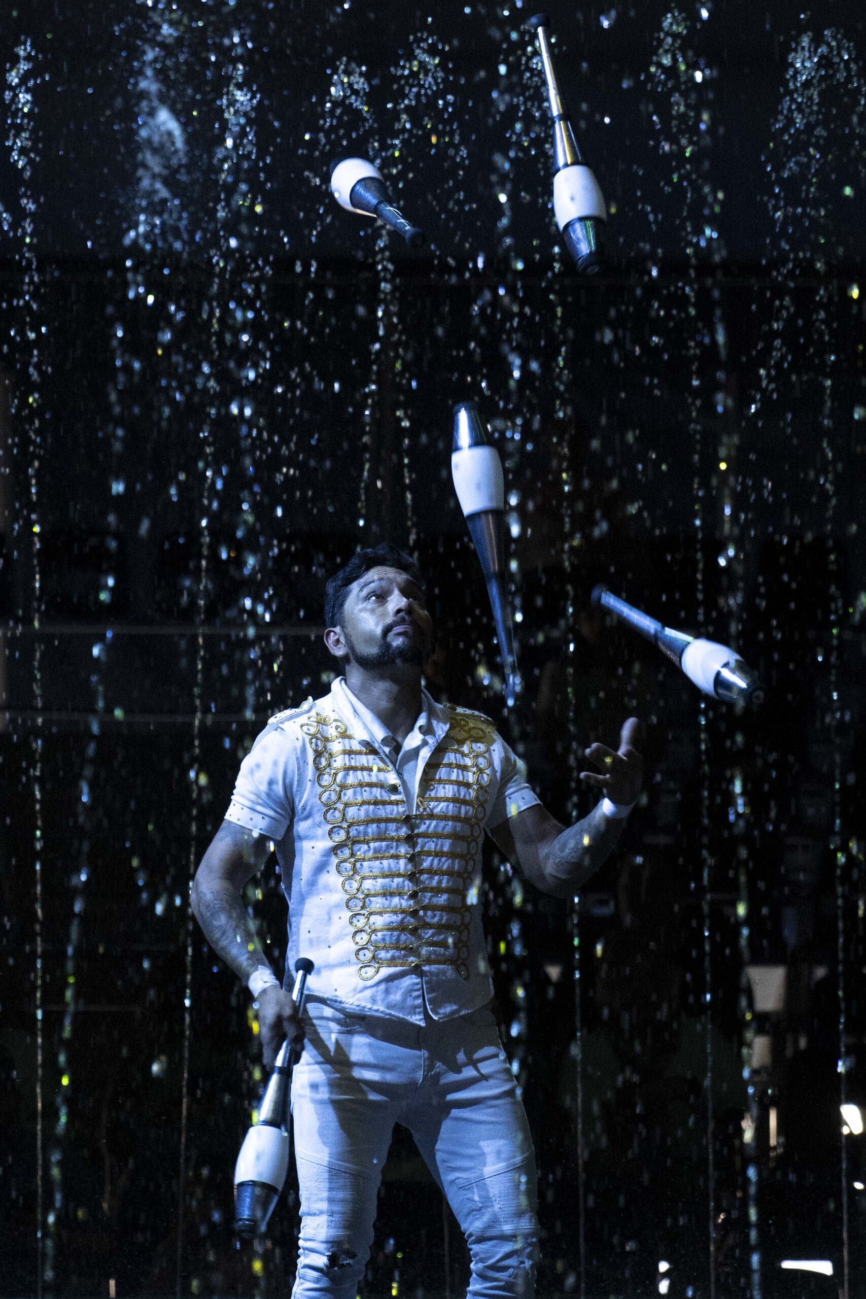 Inside the tent, performers take to a custom water stage that reflects lights and amplifies the drama of every stunt. The show features gravity-defying acrobats, Latin-inspired rhythms, comedic moments and audience participation that keeps the atmosphere lively. The ringmaster, described by many as “a hoot,” sets the tone early, weaving humor throughout the production and drawing spectators into the action.