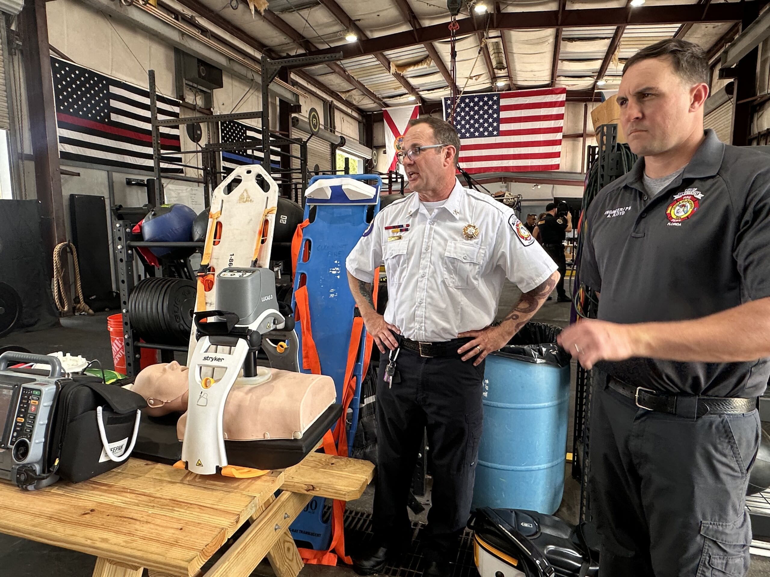 “If we were to walk in on a call, the firefighter would immediately check for a pulse and start CPR,” an assistant fire chief explains. “As we’re starting CPR, my partner can go ahead and set this up… and now, I am hands free.”