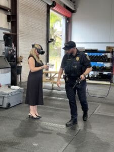On the law enforcement side, the facility also houses expanded training operations for the Clermont Police Department, including updated shooting simulators that have been relocated to the site and upgraded with virtual reality headsets, replacing traditional video-based systems with more immersive, scenario-driven training.