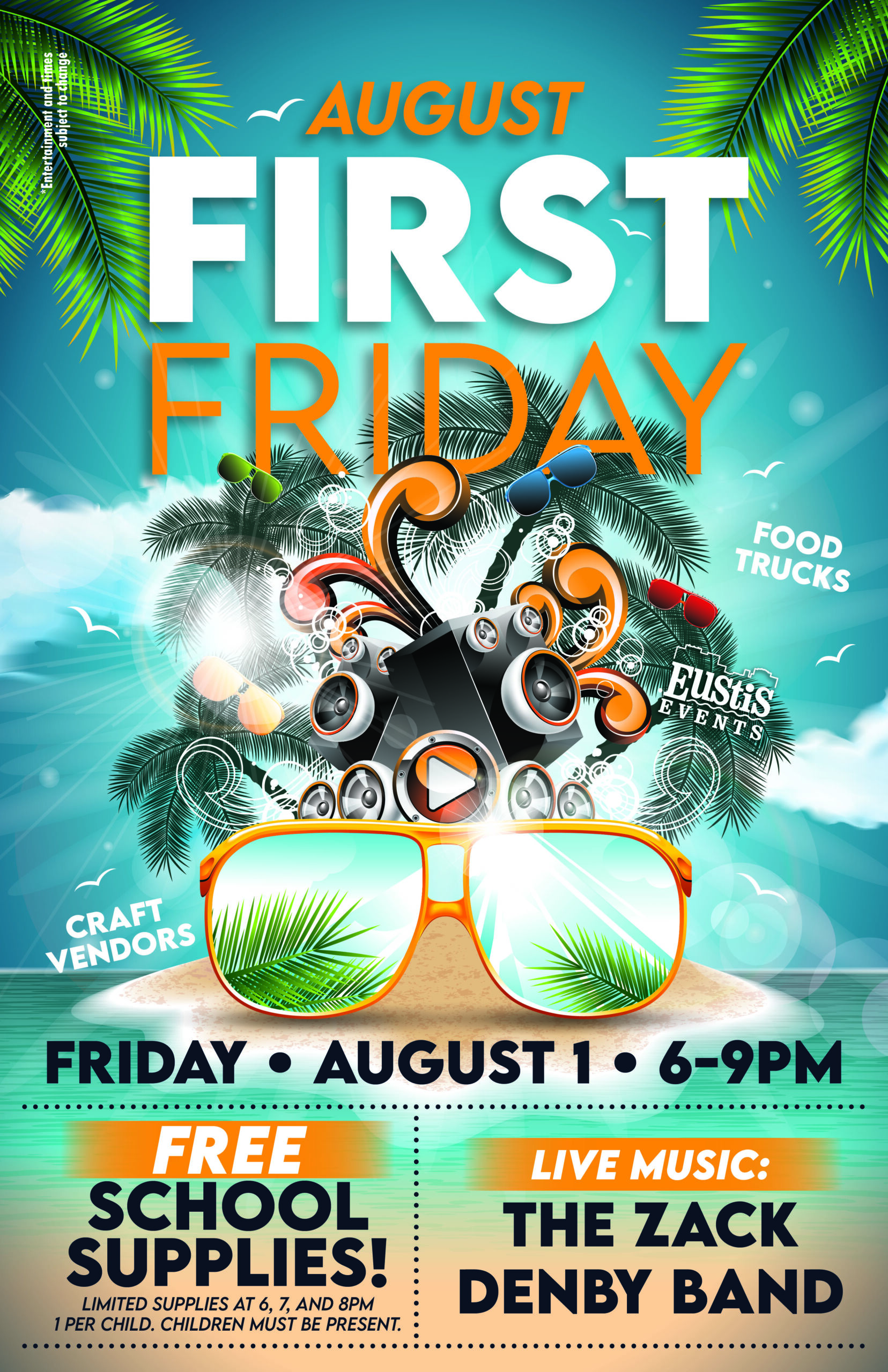 On Friday, Aug. 1, from 6 to 9 p.m., the city of Eustis is holding a back-to-school First Friday in downtown Eustis.