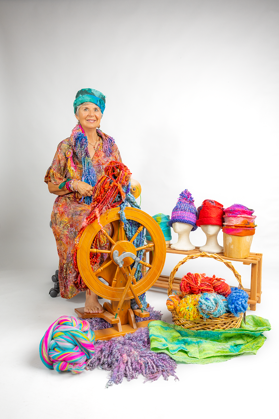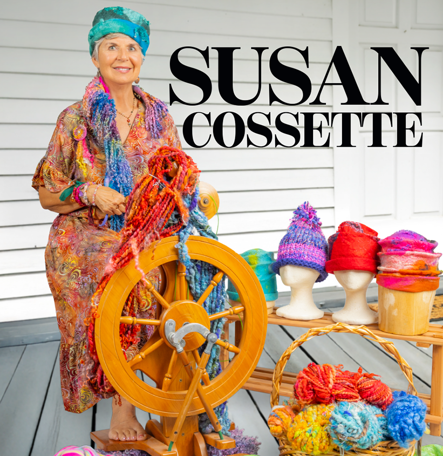 Susan Cossette spins her own yarn and creates wearable art from natural fibers in a studio named for her hometown.