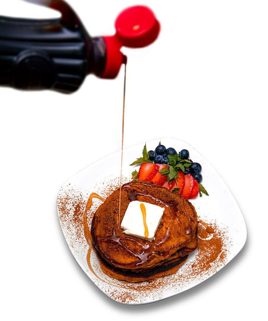 Preheat oven to 225 degrees. Using a fine mesh strainer sift flours, baking powder, baking soda, salt and spices together into a large mixing bowl. In a medium bowl, whisk the milk, honey, pumpkin purée, eggs, melted butter and vanilla extract until well combined. Pour the wet ingredients into the dry ingredients and whisk together until just combined. You may have a few lumps but that’s fine. Heat a griddle or nonstick skillet over medium-low heat. Add butter to grease when hot. Using a 1/4 cup measure scoop pancake mixture into greased griddle or pan. Leave some room between pancakes so batter can spread. Cook on medium low heat until batter begins to bubble, and the bottom starts to turn brown. Using a spatula carefully flip. And cook another two to three minutes, until the batter is completely cooked through and the pancakes are puffy and deep golden brown. (be careful not to burn) Clean griddle or pan add additional butte and repeat until all of the batter is used. Place pancakes on an oven proof dish or baking sheet and place in oven to keep warm until all pancakes are cooked. Serve warm with warm maple syrup.