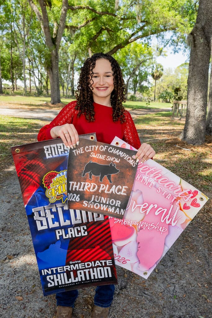 Olivia plans to compete again this year in the full Florida Junior Swine Circuit, a demanding schedule that includes roughly 15 circuit shows along with additional jackpot shows throughout the summer. The commitment requires long weekends, travel across the state and hours of daily work with her pigs, but it’s something she has fully embraced.