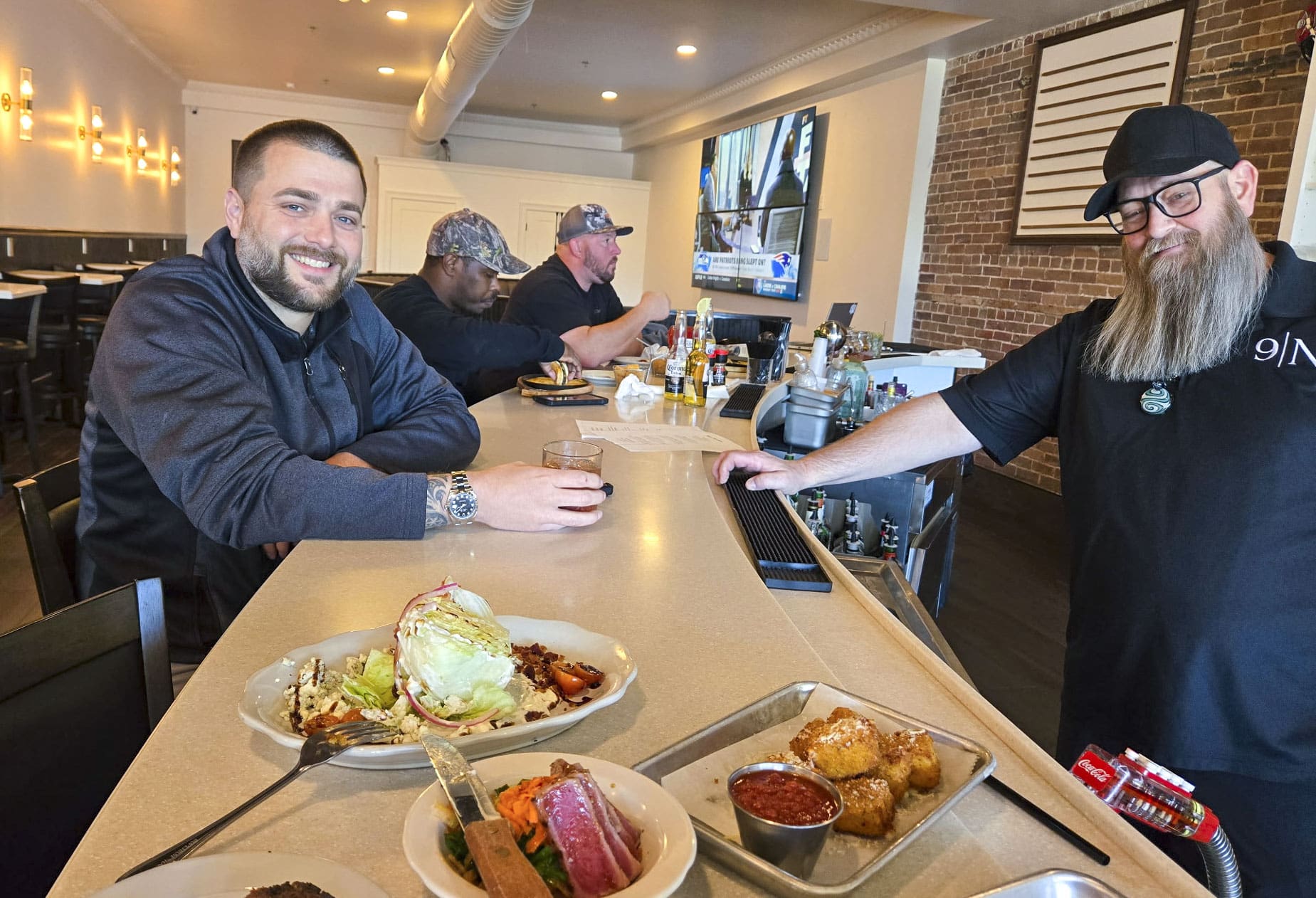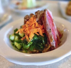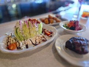 Dishes include lightly seared ahi tuna served over a seaweed salad and finished with the house orange teriyaki sauce, along with a blue cheese wedge built on crisp iceberg lettuce and topped with bacon, blue cheese crumbles, cherry tomatoes, pickled red onions and house-made blue cheese dressing.
