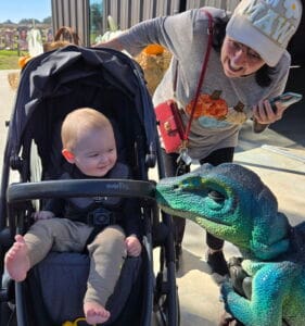 The dinosaur encounters were the main draw as soon as guests arrived at the front entrance gate, and kids lined up to meet and pet a baby Spinasauraus named Juno, who posed with a trainer for each photo op.