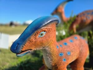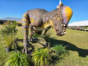Life-size animatronic dinosaurs like the Pachycephalosaurus and Diabloceratops roared, growled and blinked while feathered raptors and a Brontosaurus hovered over the grounds.