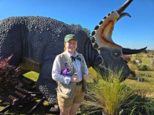 Lorna Patterson, a resident actor with Dino Refuge, says it’s fun to mix entertainment while weaving in real information.