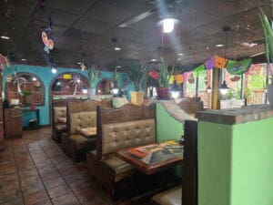 The bar is always lively, anchored by Ildefonso’s signature margaritas served in glass Patron bottles with flavors like passion fruit, peach and banana strawberry. They plan to remodel the bar area this year.