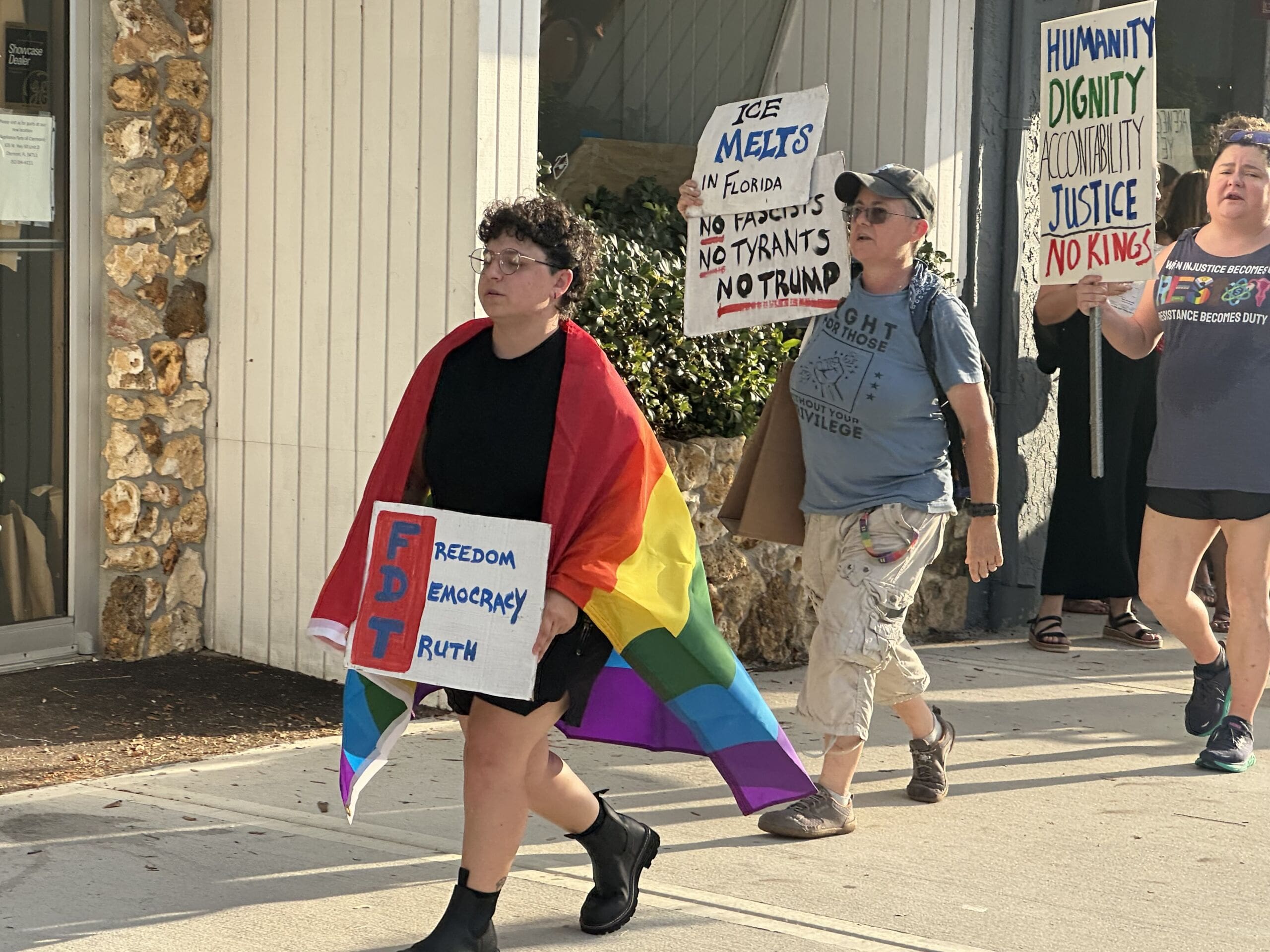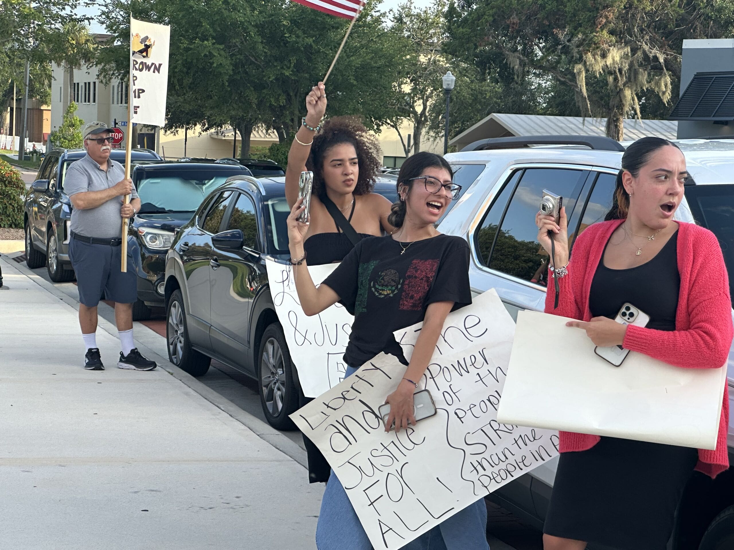 Similar scenes unfolded in Leesburg and Mount Dora, where protesters were vocal yet civil.