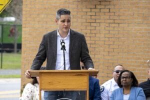 “It’s a day that took 938 days to come to fruition,” Reisman says during the ceremony, recognizing the work of city staff, first responders and partners who helped make the installation possible.