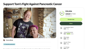 A GoFundMe campaign organized titled “Support Tom’s Fight Against Pancreatic Cancer,” has raised more than $30,000 toward a $35,000 goal to help cover medical bills, mortgage payments, insurance, medications and daily expenses for the family. Tom is described by loved ones as a caring, loving husband, father and son who has always worked hard to help others, recently began chemotherapy with plans for further treatment.