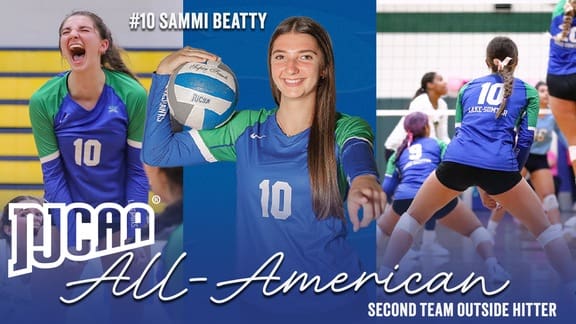 Lake-Sumter State College Freshman outside hitter Samantha Beatty has been named to the NJCAA Division II Volleyball Second Team All-America, the association announced last Tuesday. The honor makes Sammi just the third player in Lake-Sumter State College history to earn national recognition.