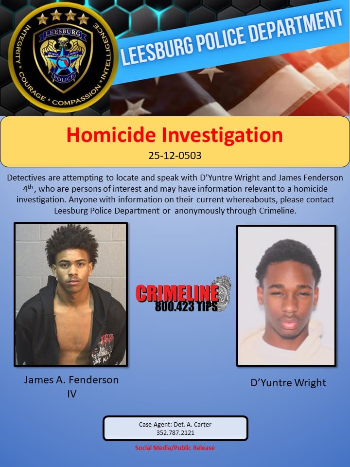 Because the Berry Park murder is still under investigation it is not clear if Leesburg police officers are getting assistance from U.S. Marshals and other agencies. It would be shocking if the Lake County Sheriff’s Warrants squad was not involved.
