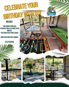 The husband-and-wife team owns and operates the 18-hole, tropical-themed course, which also features complimentary lawn games like cornhole and disc golf, plus indoor favorites including pool, air hockey, foosball and ping pong. Arcade games are being added as they continue expanding the fun.