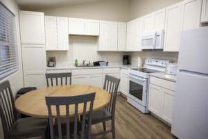 Inside each unit is everything a family needs to begin again, including beds, furniture, a kitchen, even crockpots and 2026 calendars donated days ago. What’s missing on purpose are TVs. Instead, mothers will spend their days in classes, job training, Bible study, nutrition lessons and hands-on parenting instruction. Their children, ages 5–17, will have after-school help, meals and a safe and comfortable place to lay their heads each night.