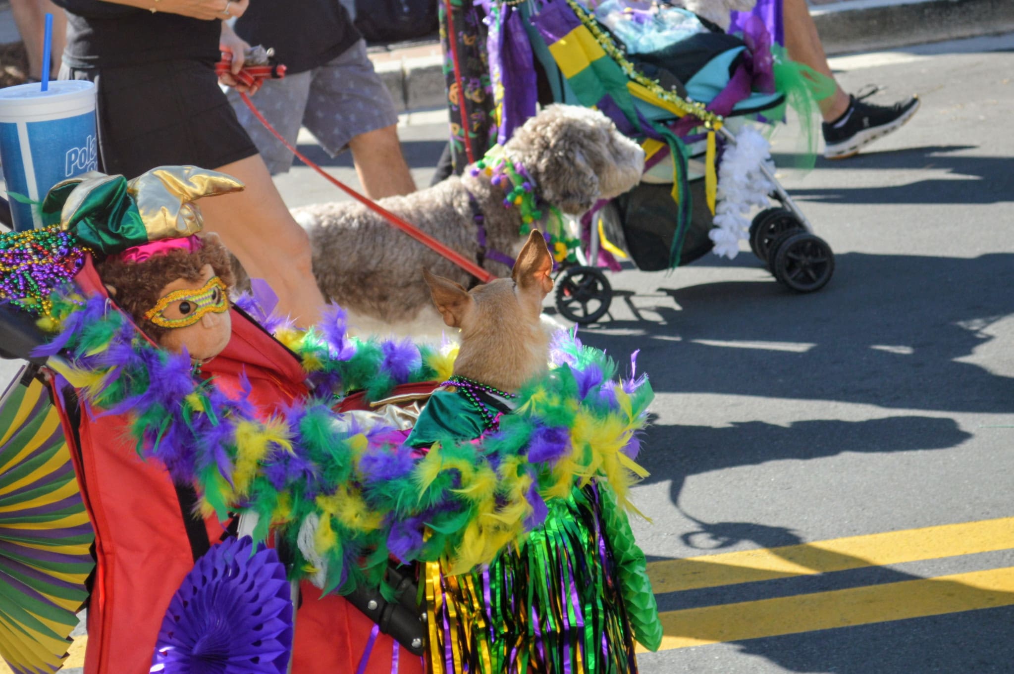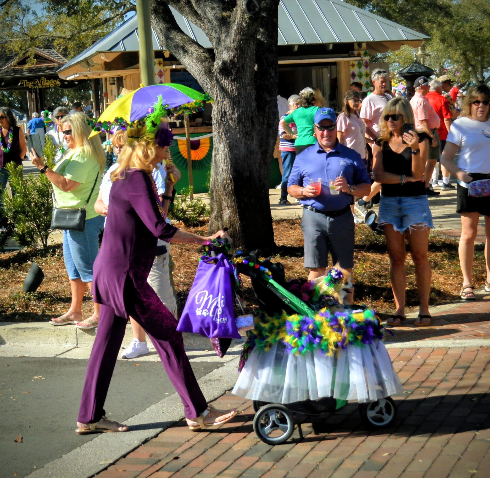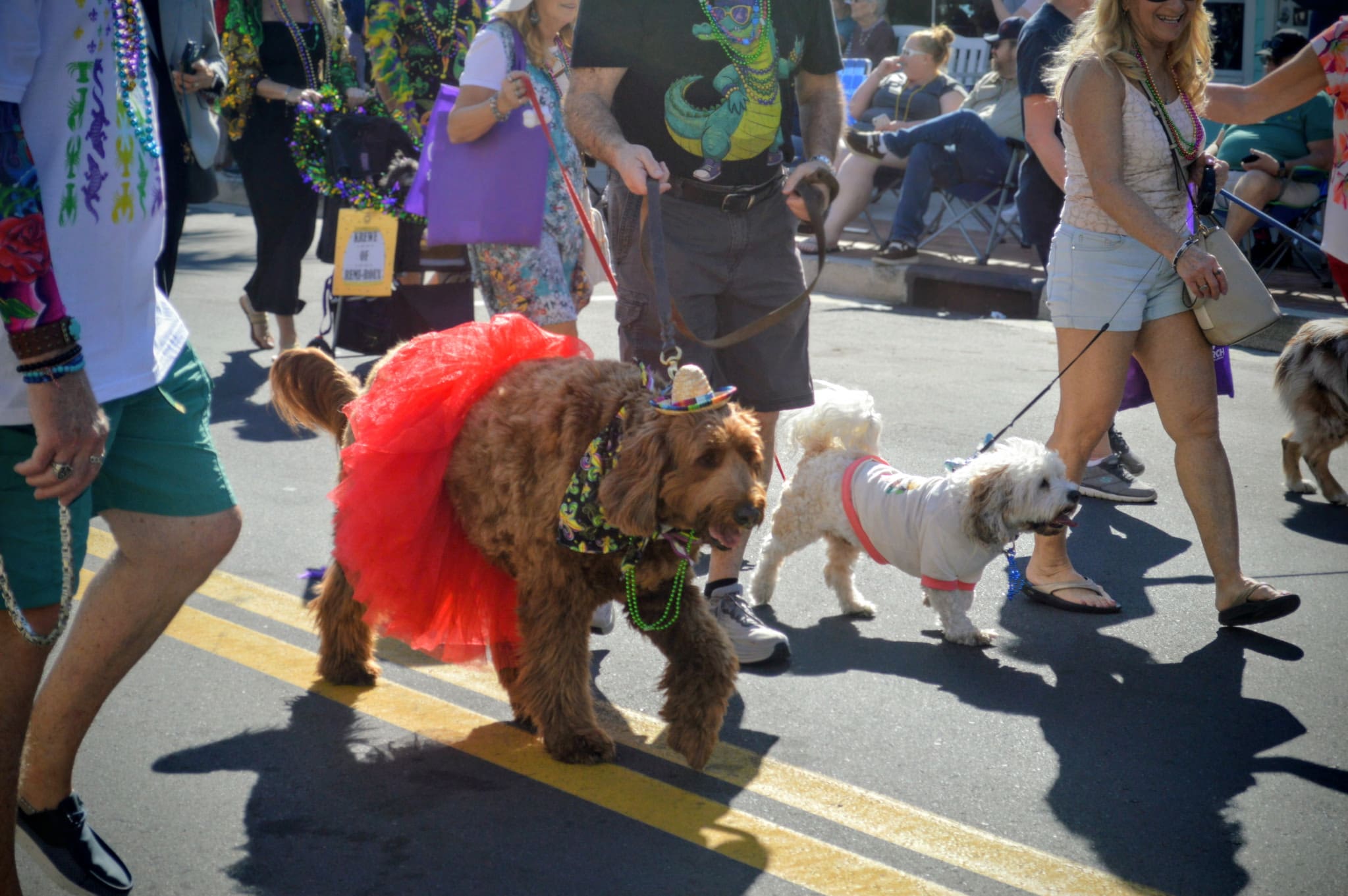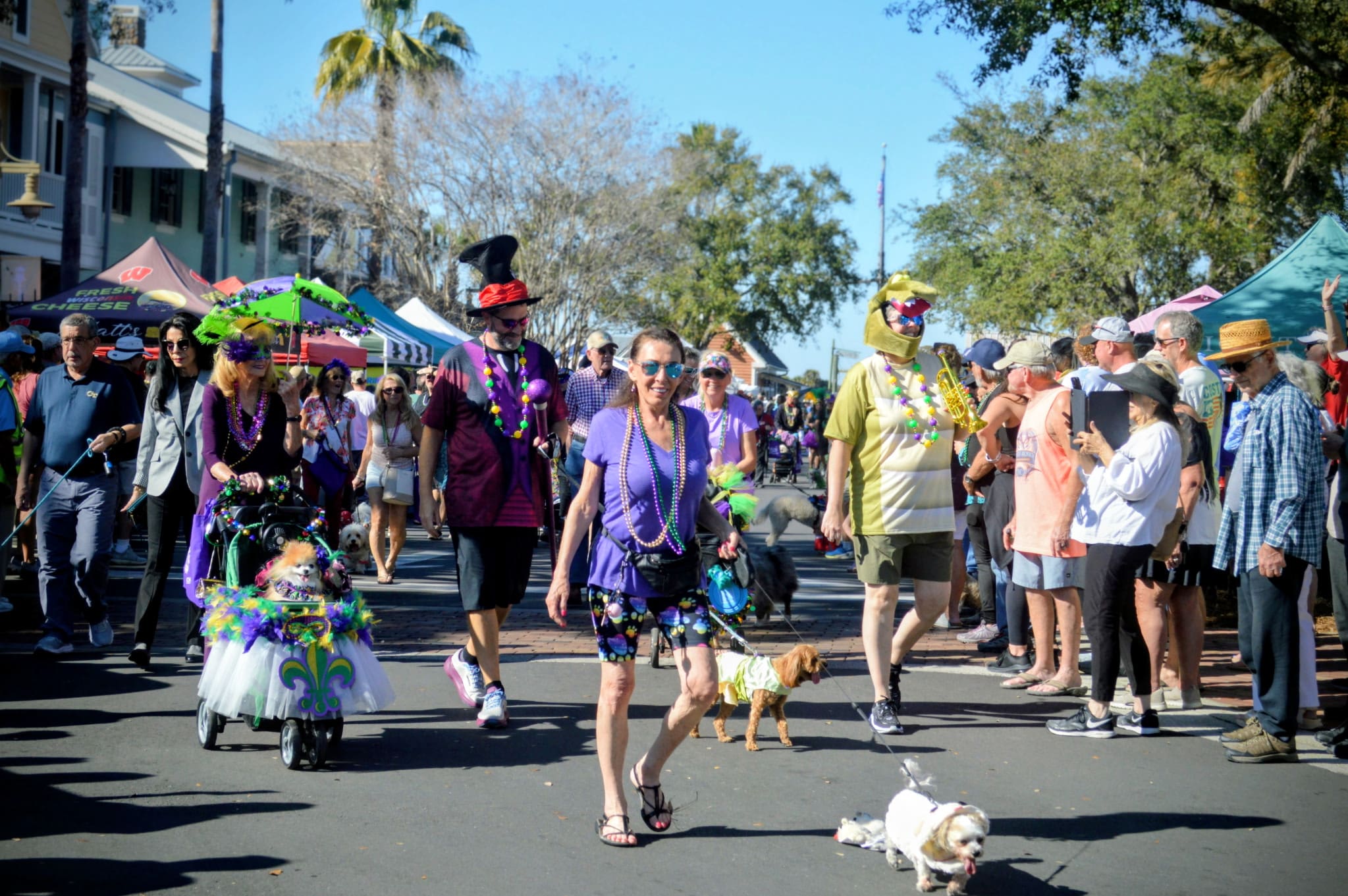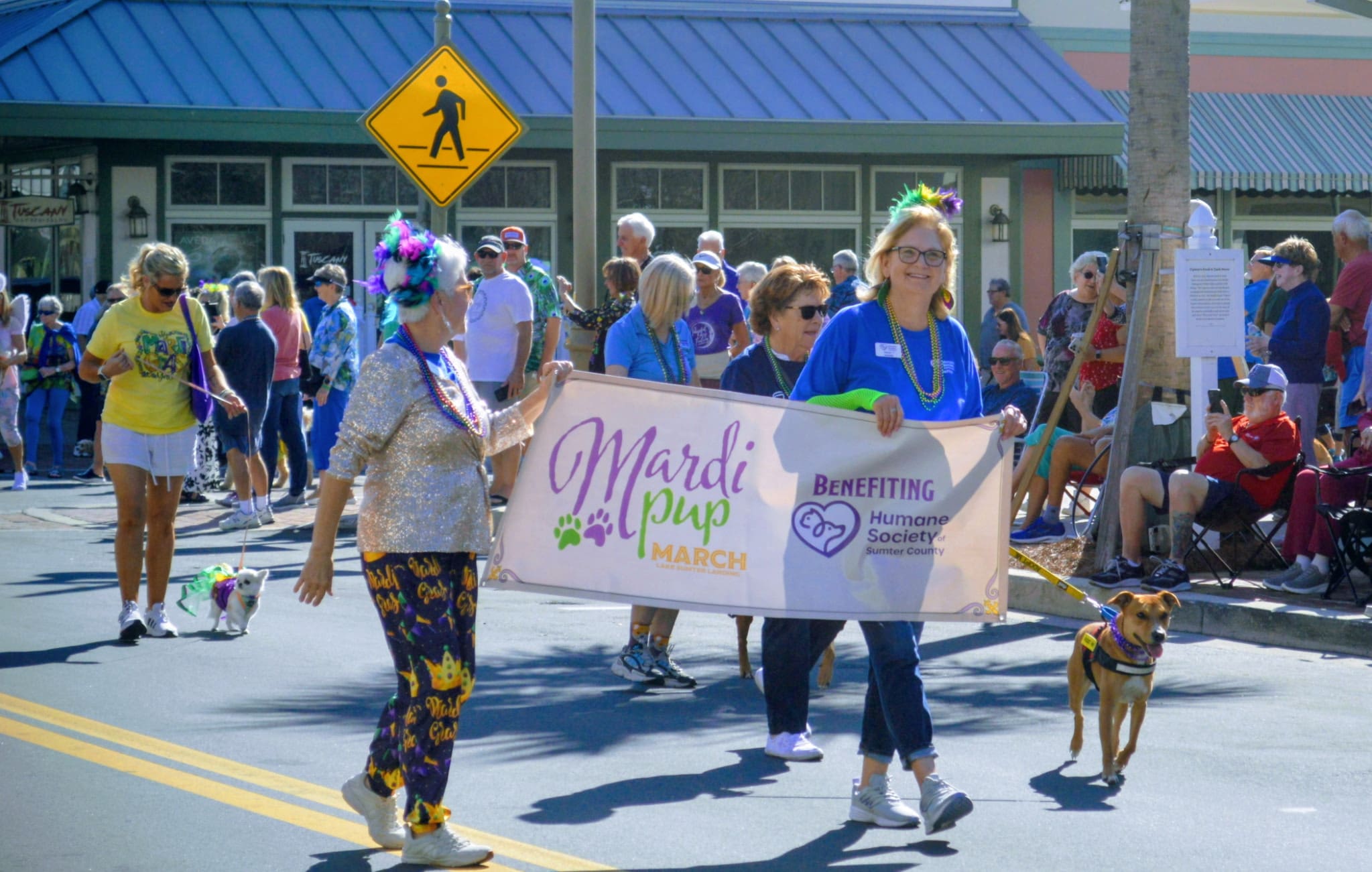 Mardi Pup March Brings Beads, Costumes and Tail Wags to Lake Sumter Landing 💜💛💚