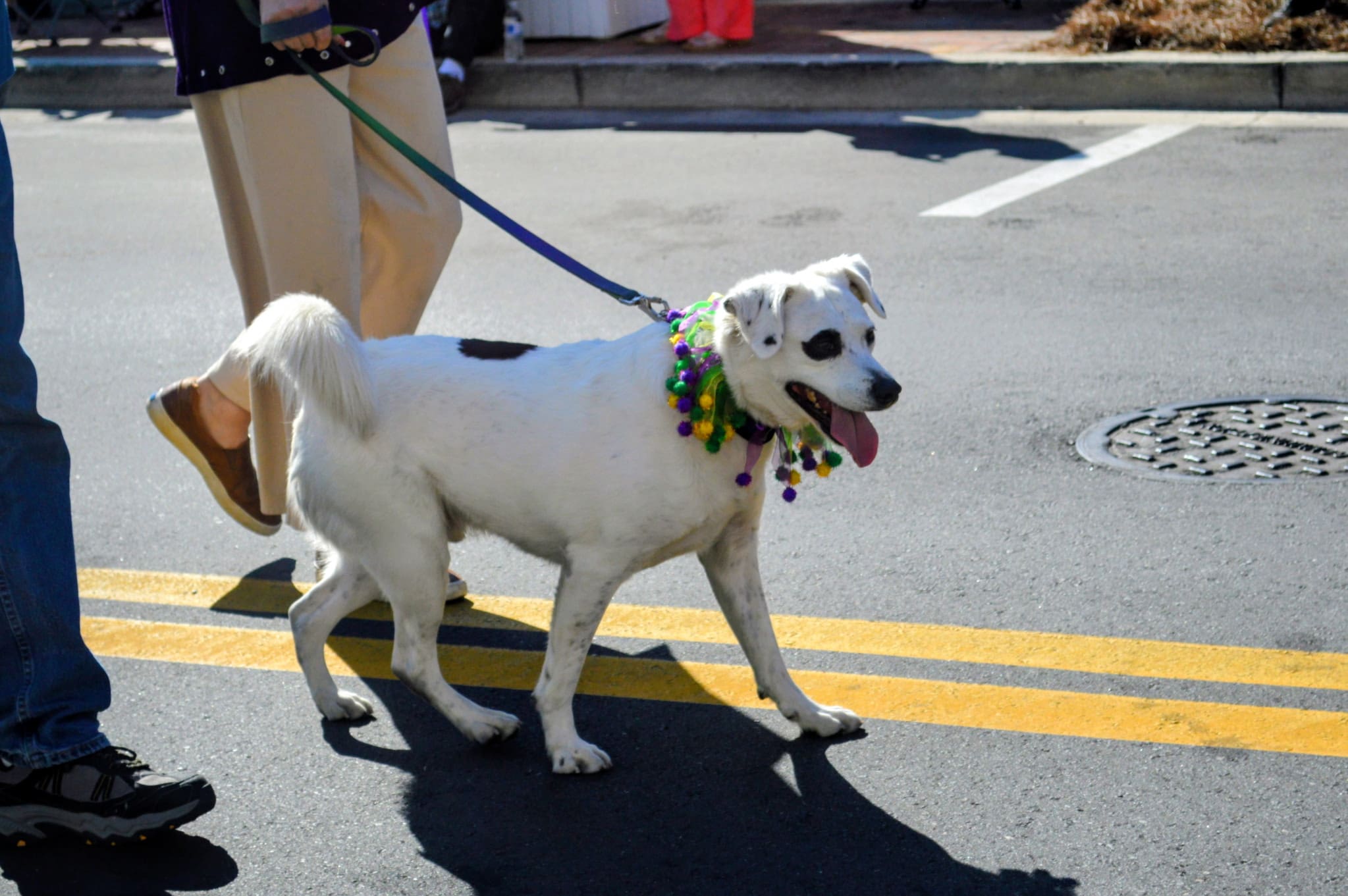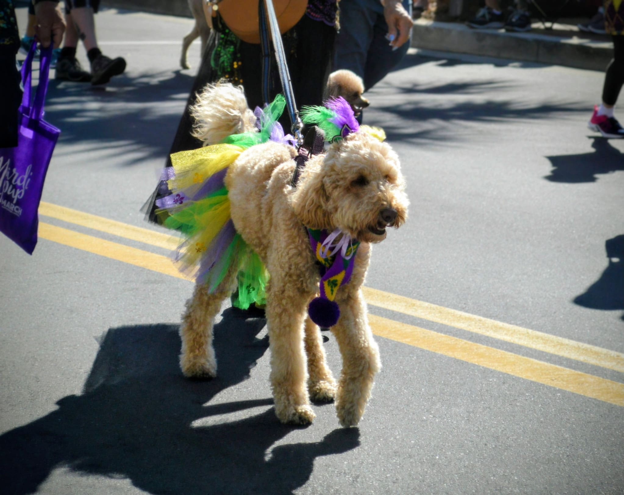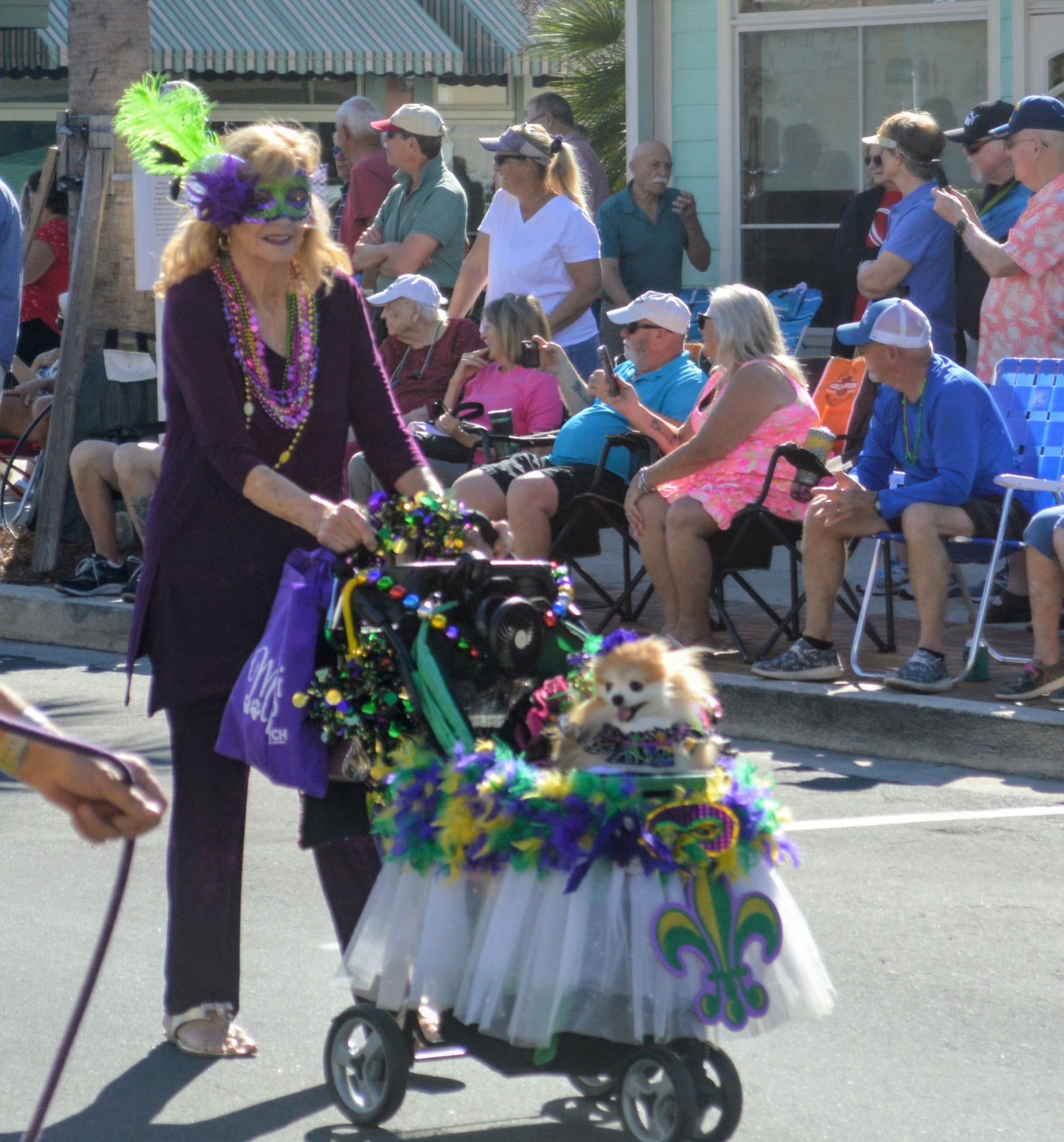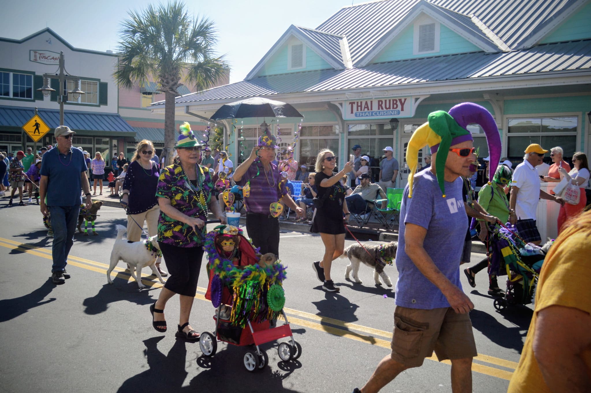 Mardi Pup March Brings Beads, Costumes and Tail Wags to Lake Sumter Landing 💜💛💚