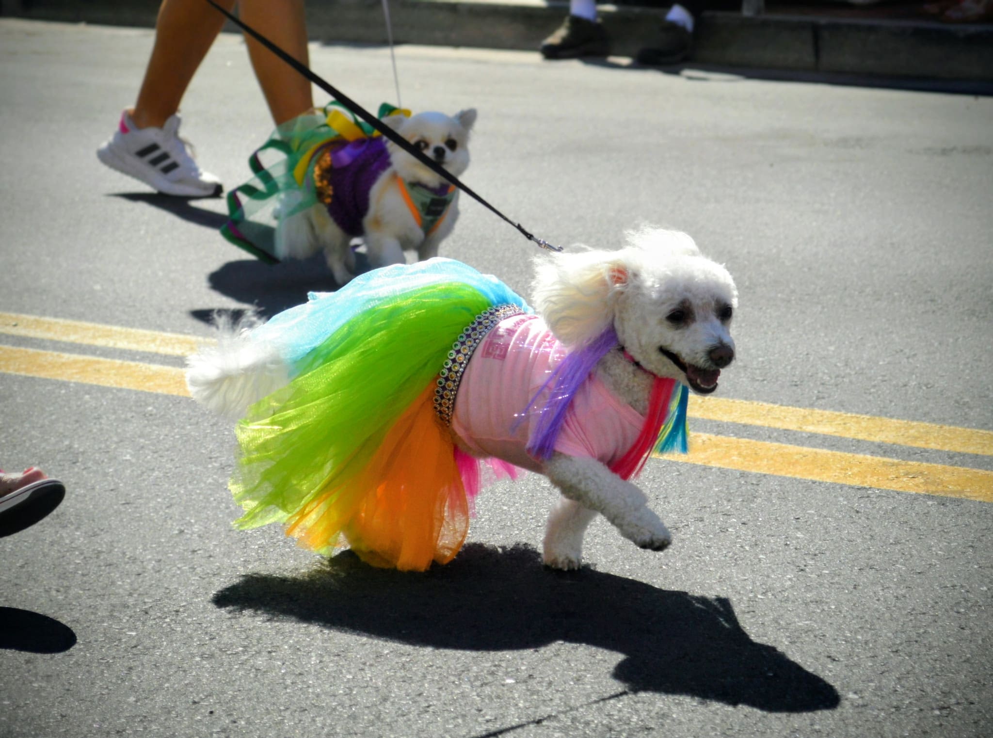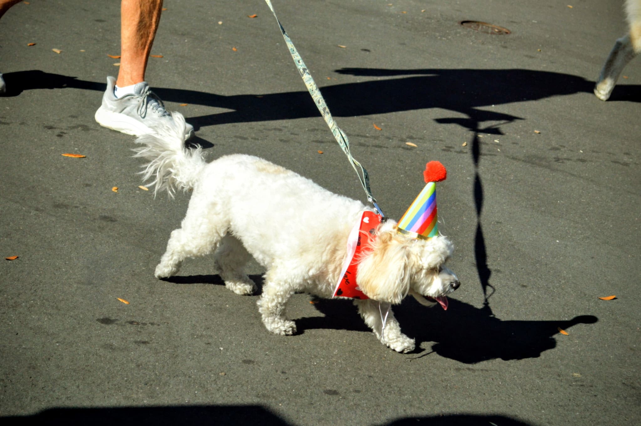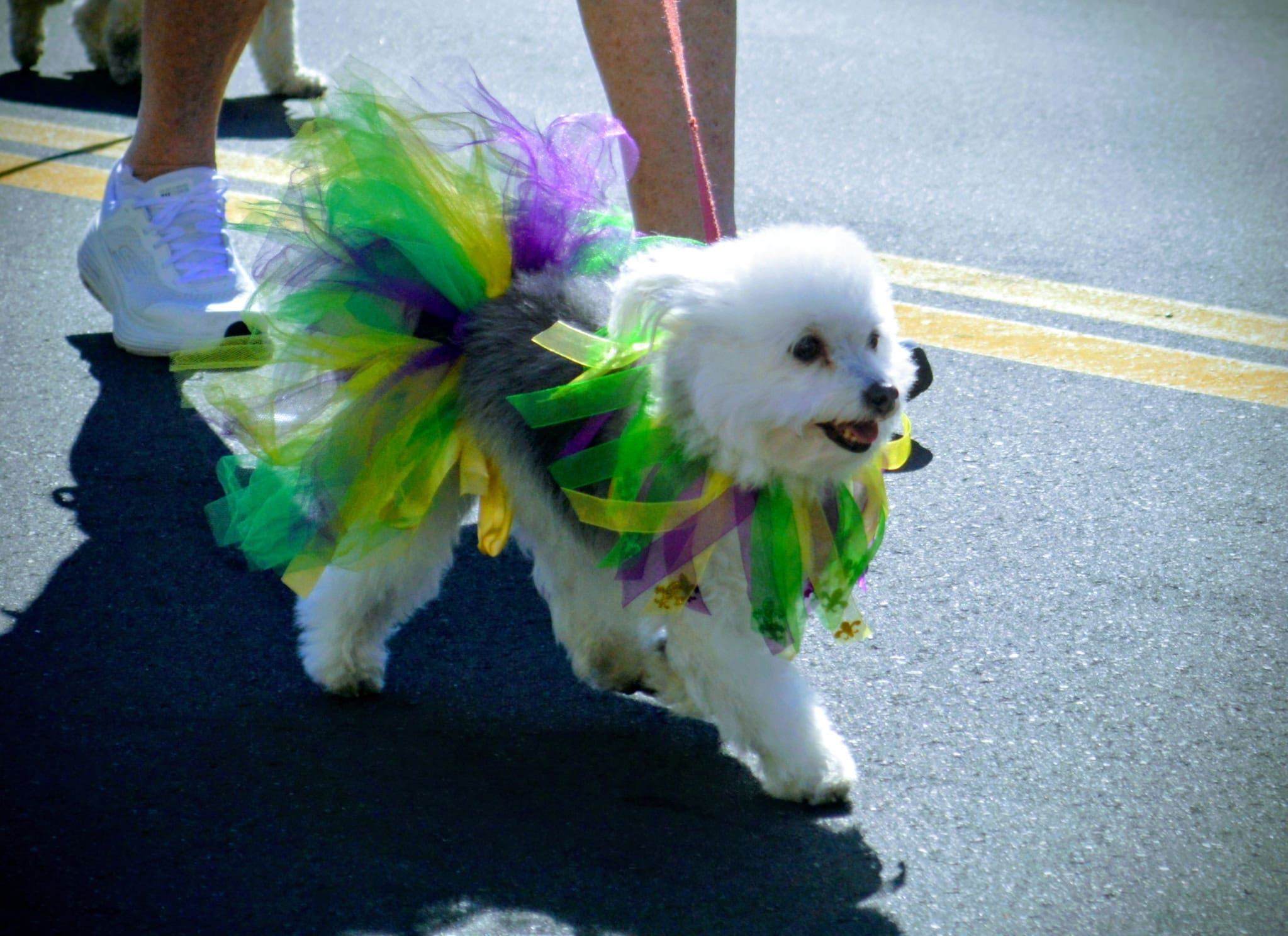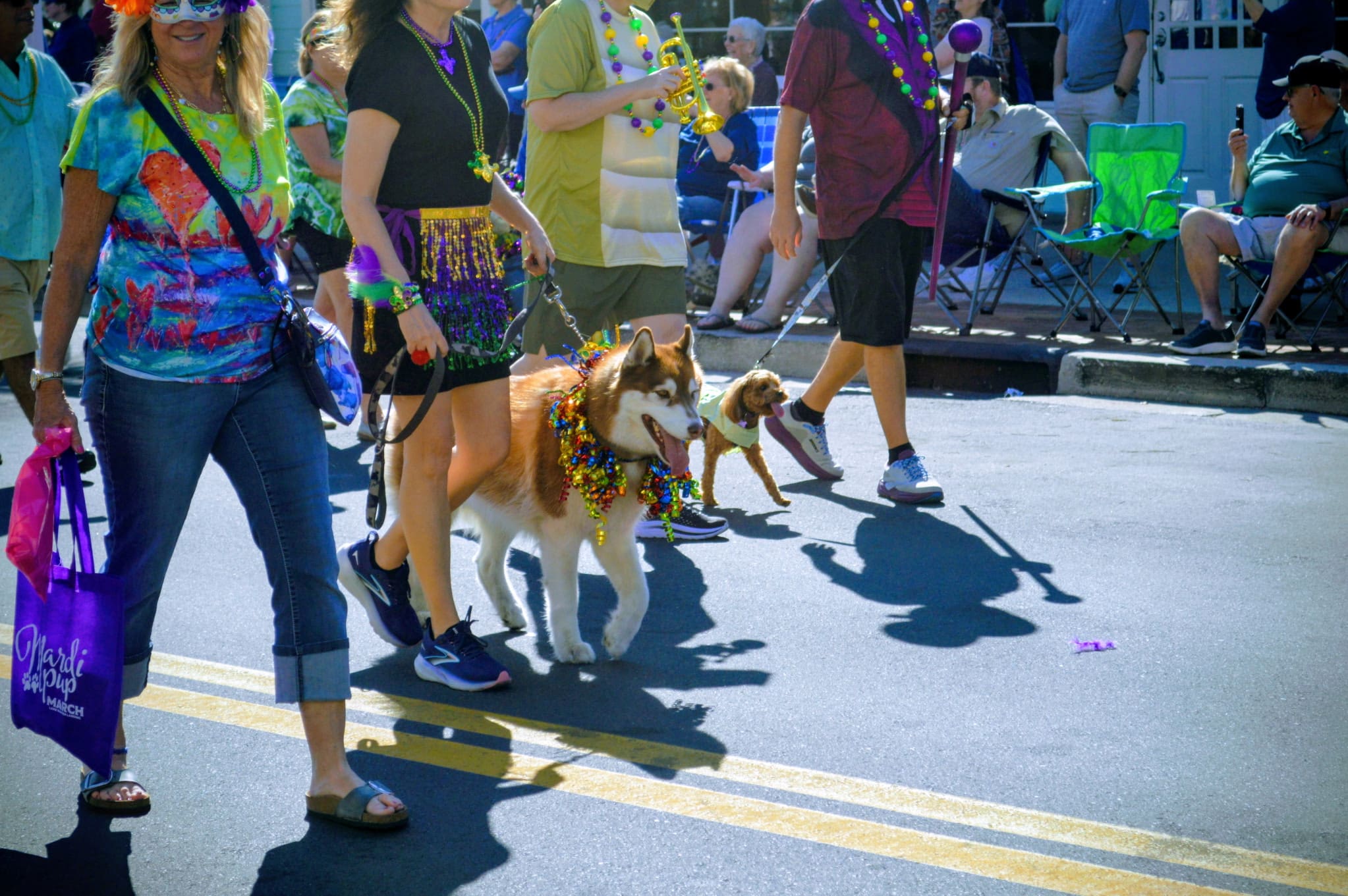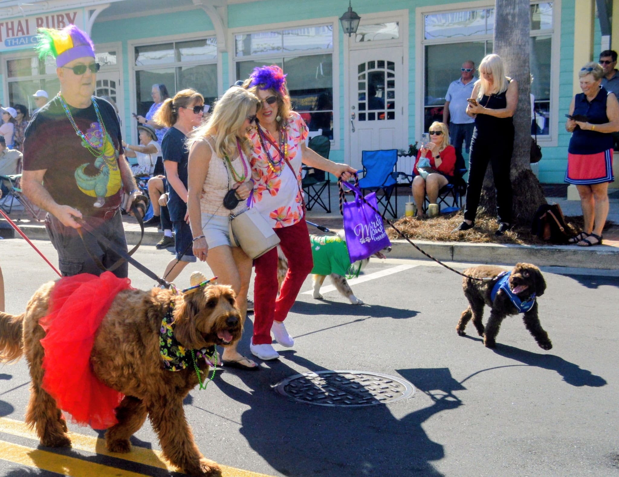 Mardi Pup March Brings Beads, Costumes and Tail Wags to Lake Sumter Landing 💜💛💚