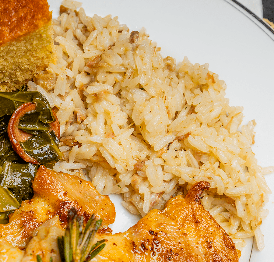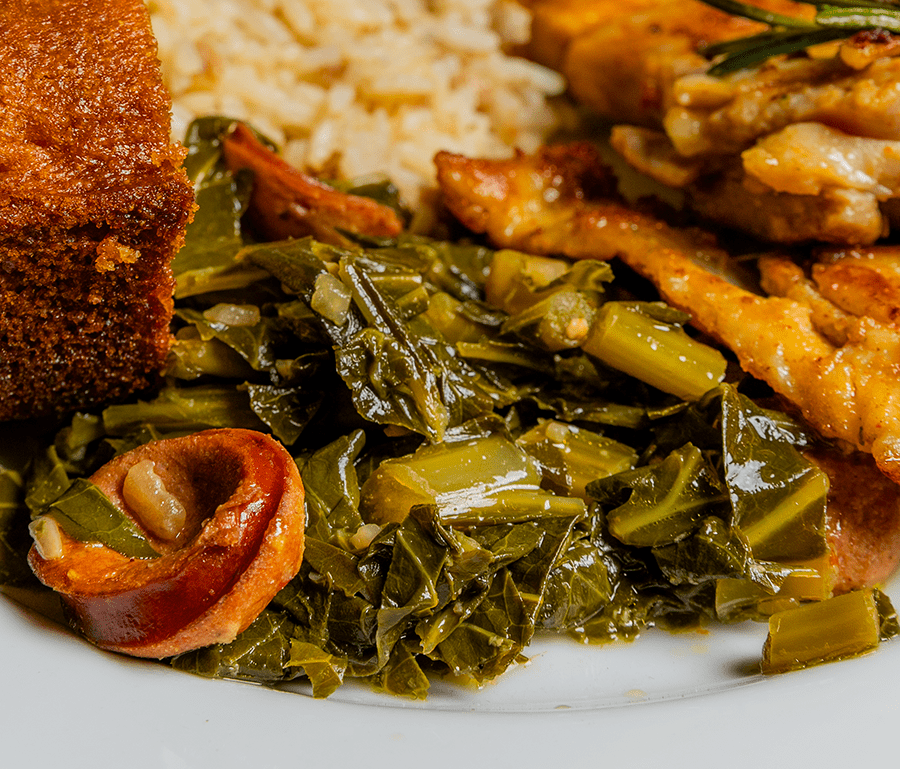 “I learned to roll the collard greens, chop them myself and cook them the old-school way,” he says.