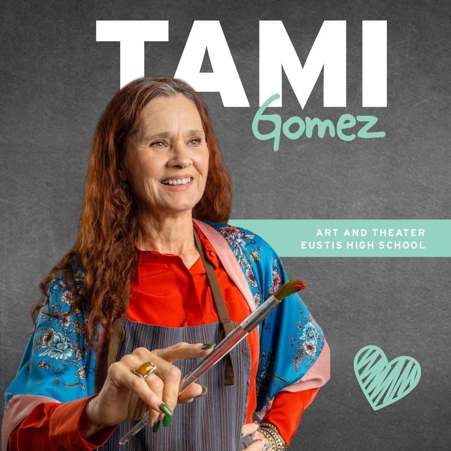 Tami, an art teacher at Eustis High School since 2019, says her mission is to build “an inclusive, safe space where students feel empowered to take creative risks without fear of judgment.”