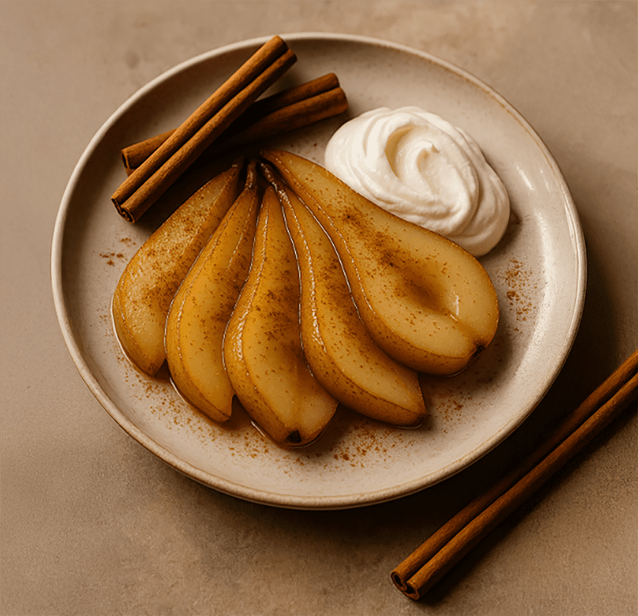 *Pears baked without cinnamon are great with a variety of cheeses like gorgonzola, manchego or brie. You can also pour on a bit of brandy or spiced rum during baking, then add vanilla gelato.